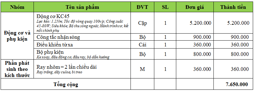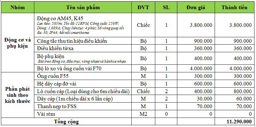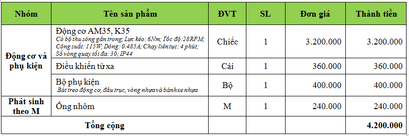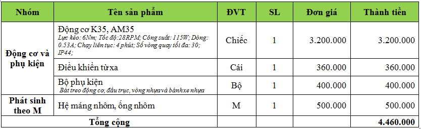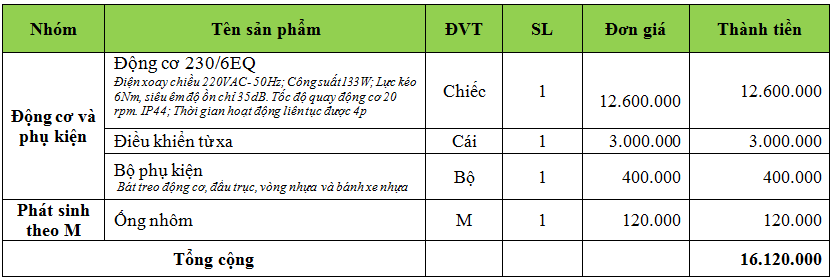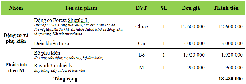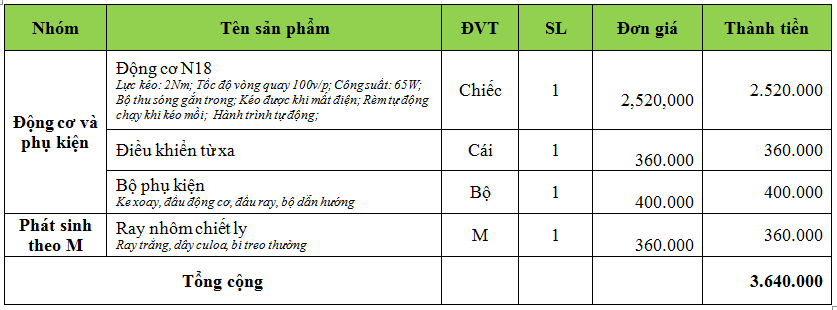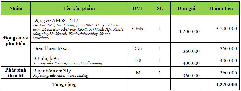 BẢNG GIÁ ĐỘNG CƠ RÈM