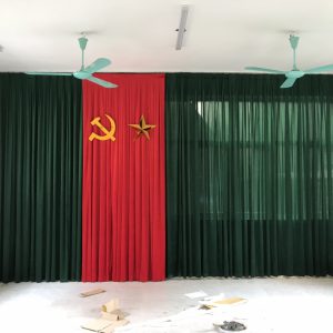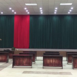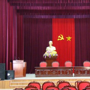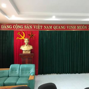 Rèm phông hội trường, sân khấu. Phông sân khấu bảo tàng Hồ Chí Minh, rộng 22m và cao 6m được sử dụng motor CHUYÊN DỤNG cho phông hội trường: