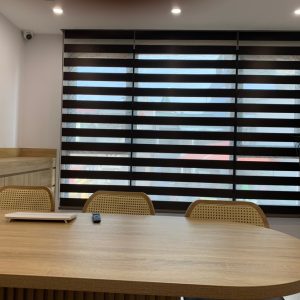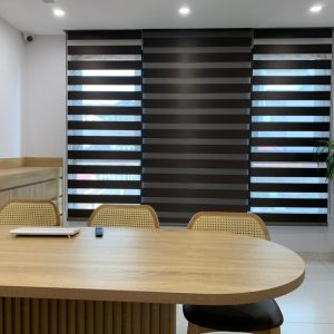 - Rèm cầu vồng có thiết kế đơn giản gồm 2 lớp vải xen kẽ nhau: vải kín chống nắng và vải lưới. Khi sử dụng, 2 lớp vải này sẽ tạo ra những khoảng sáng tối đan xen giúp điều tiết lượng ánh sáng vào phòng một cách linh hoạt.