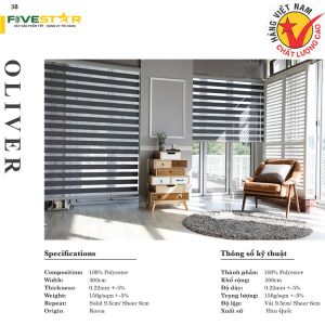 Rèm cầu vồng hãng FIVESTAR được làm từ vải tổng hợp polyester với hai dạng dệt hoàn toàn khác nhau. Trong đó, một lớp vải dày và khít có tác dụng che chắn ánh sáng. Một lớp vải mỏng như lưới giúp tạo ra không gian mở để bạn có thể nhìn xuyên ra bên ngoài. Chất liệu polyester cao cấp có độ bền rất cao, khả năng chống nắng tốt, thân thiện với môi trường và an toàn cho người sử dụng.