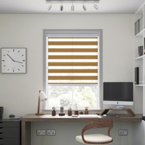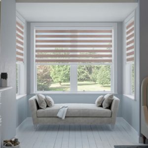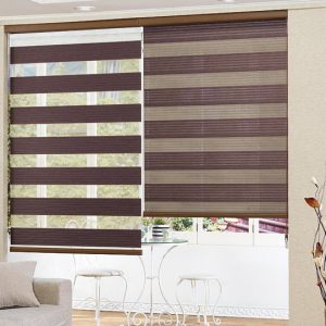 - Rèm cầu vồng có thiết kế đơn giản gồm 2 lớp vải xen kẽ nhau: vải kín chống nắng và vải lưới. Khi sử dụng, 2 lớp vải này sẽ tạo ra những khoảng sáng tối đan xen giúp điều tiết lượng ánh sáng vào phòng một cách linh hoạt.