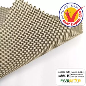 Được làm từ vải sợi 100% Polyester. Là sợi tổng hợp có khả năng chống nắng cao, cách nhiệt hiệu quả. Chất liệu sợi tổng hợp Polyester có trong các thành phần của vải. Rèm cuốn hãng Fivestar được sử dụng 100% Polyester có chứng nhận an toàn cho người dùng.